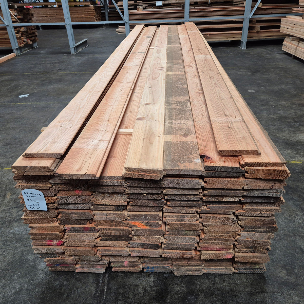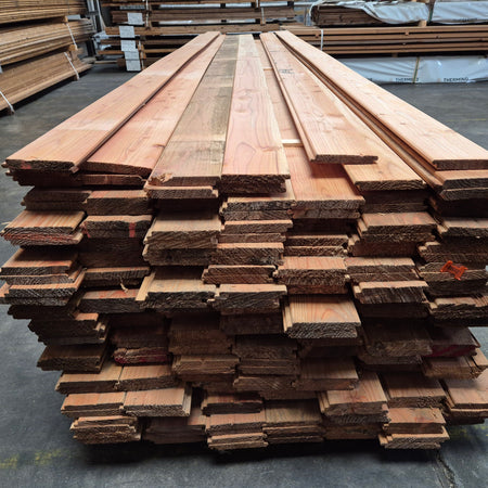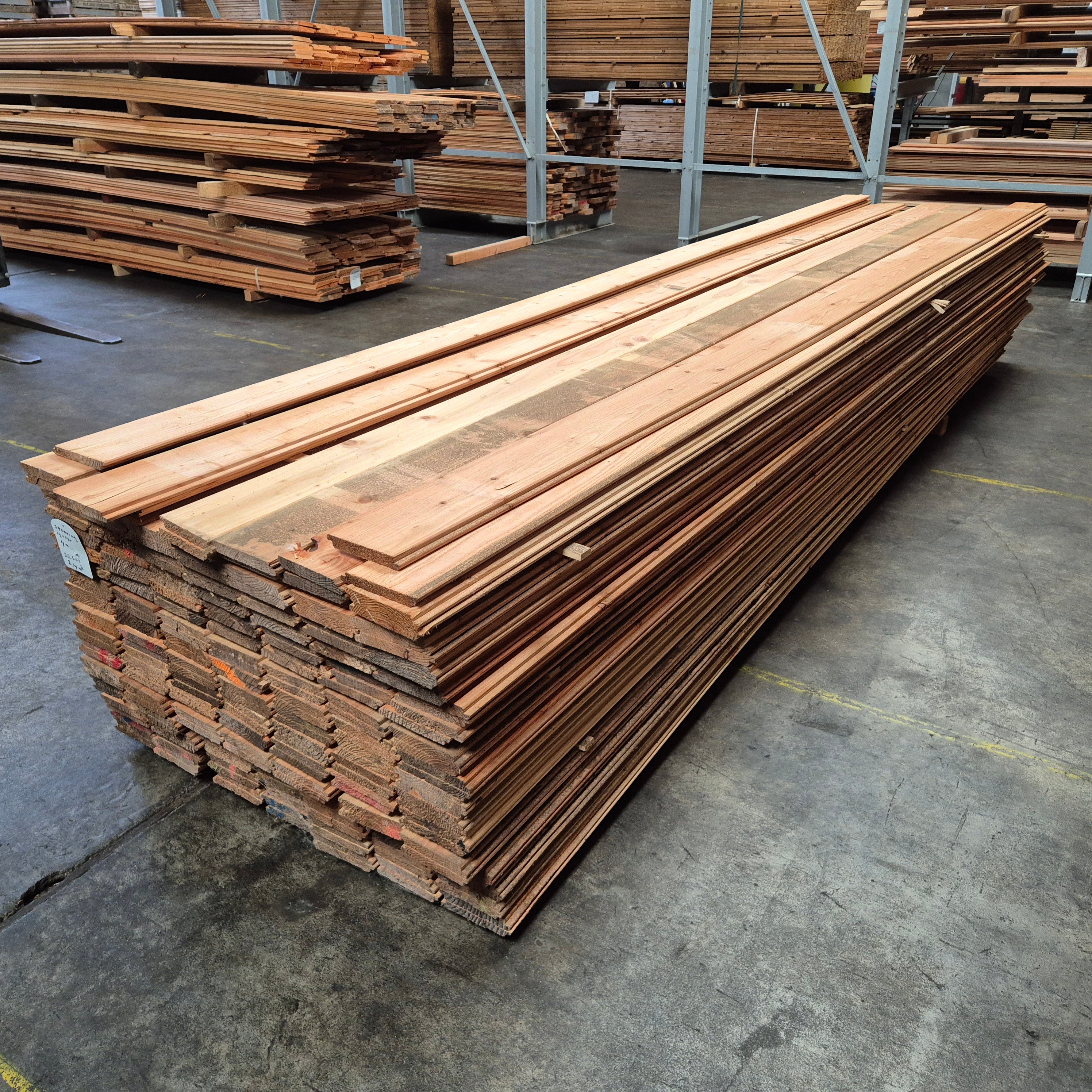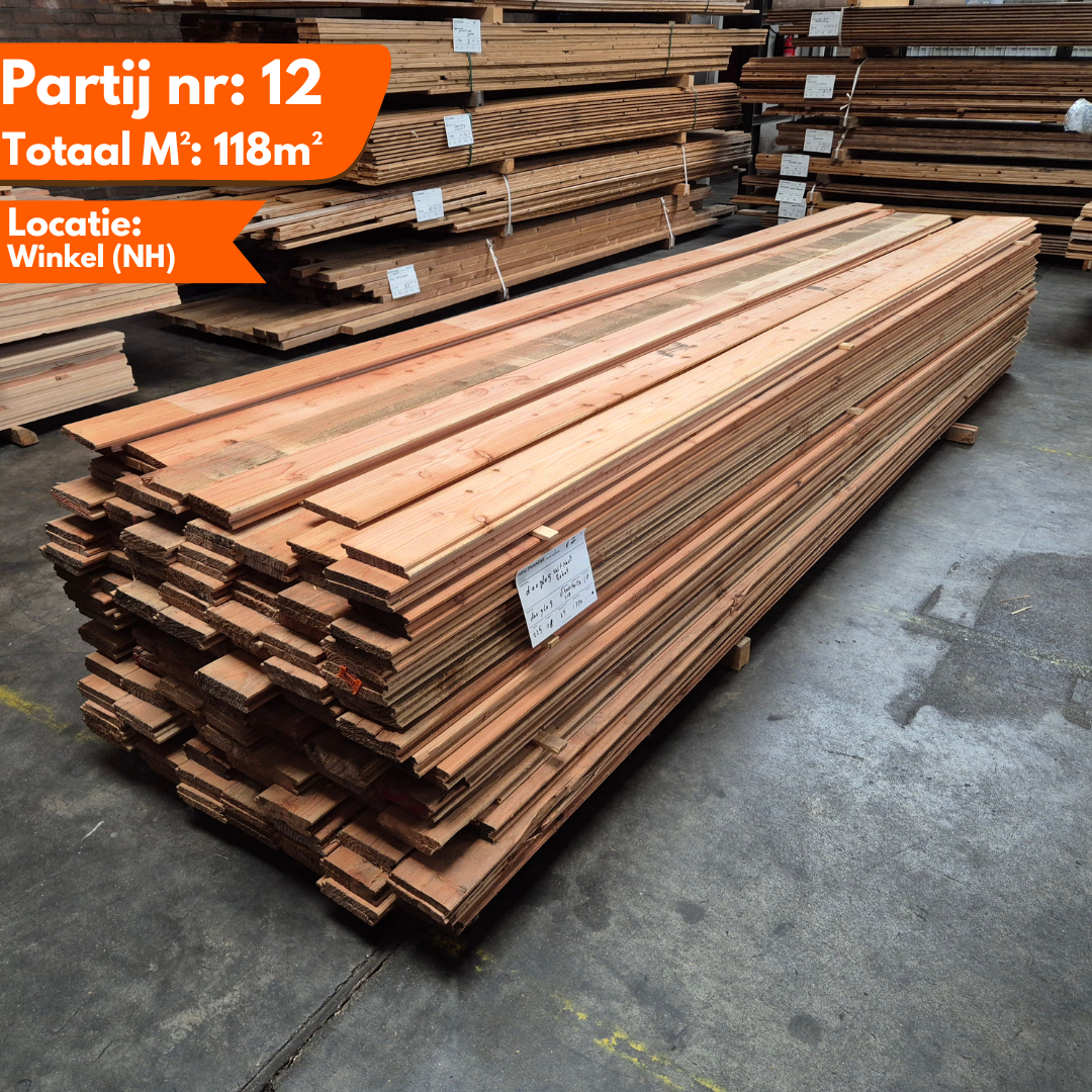 Een partij Douglas gevelbekleding met een Halfhouts Rabat profiel.