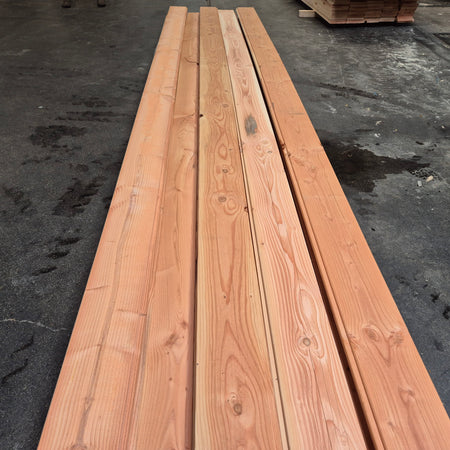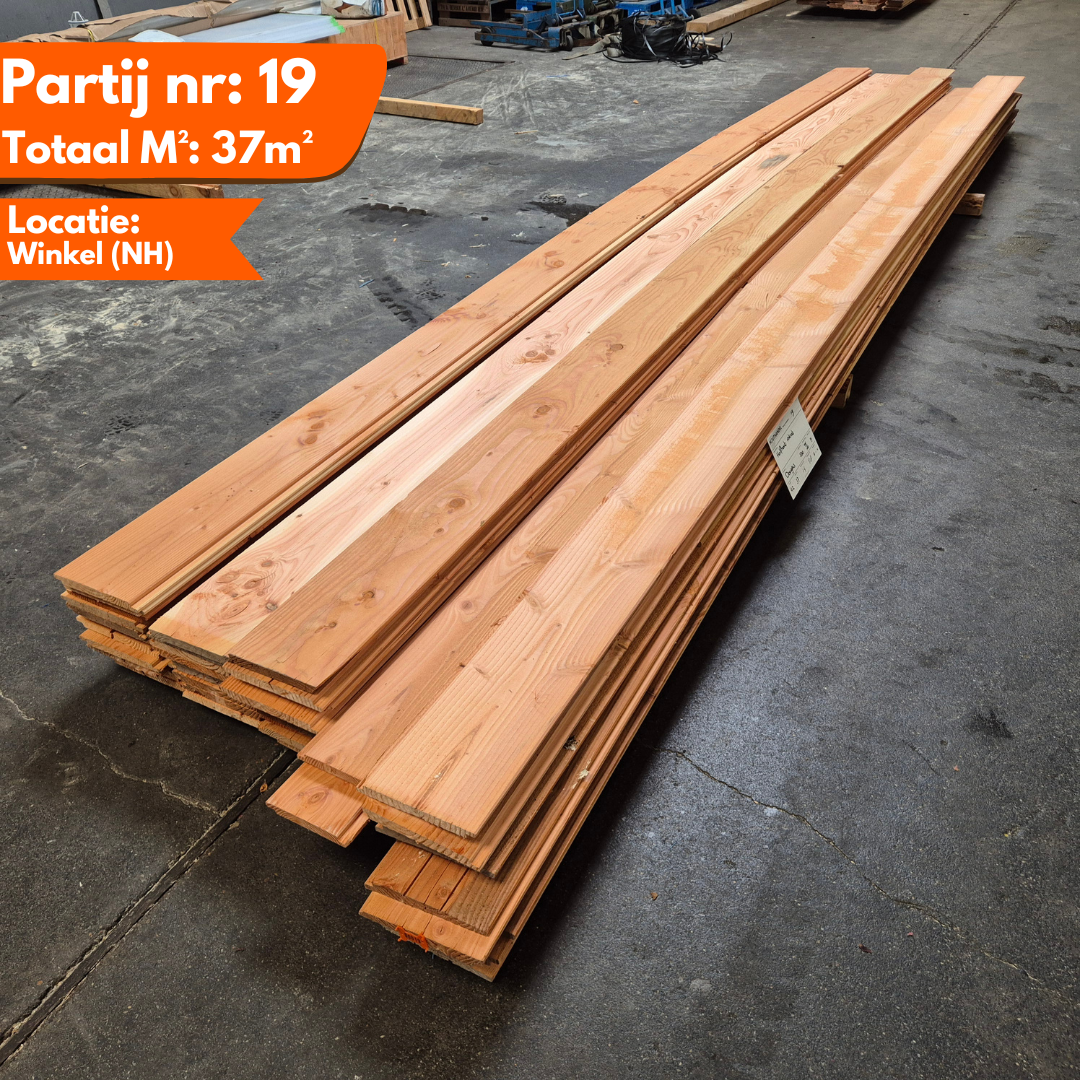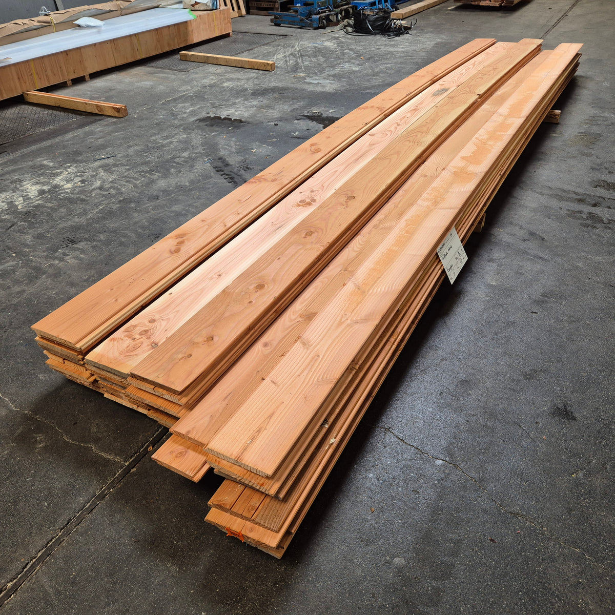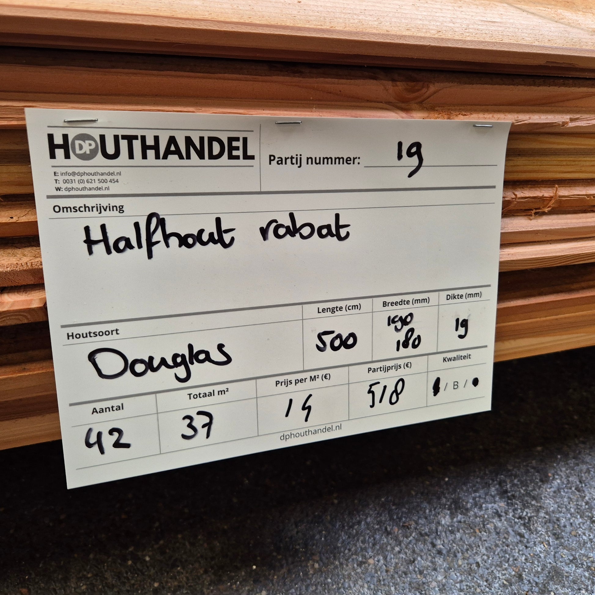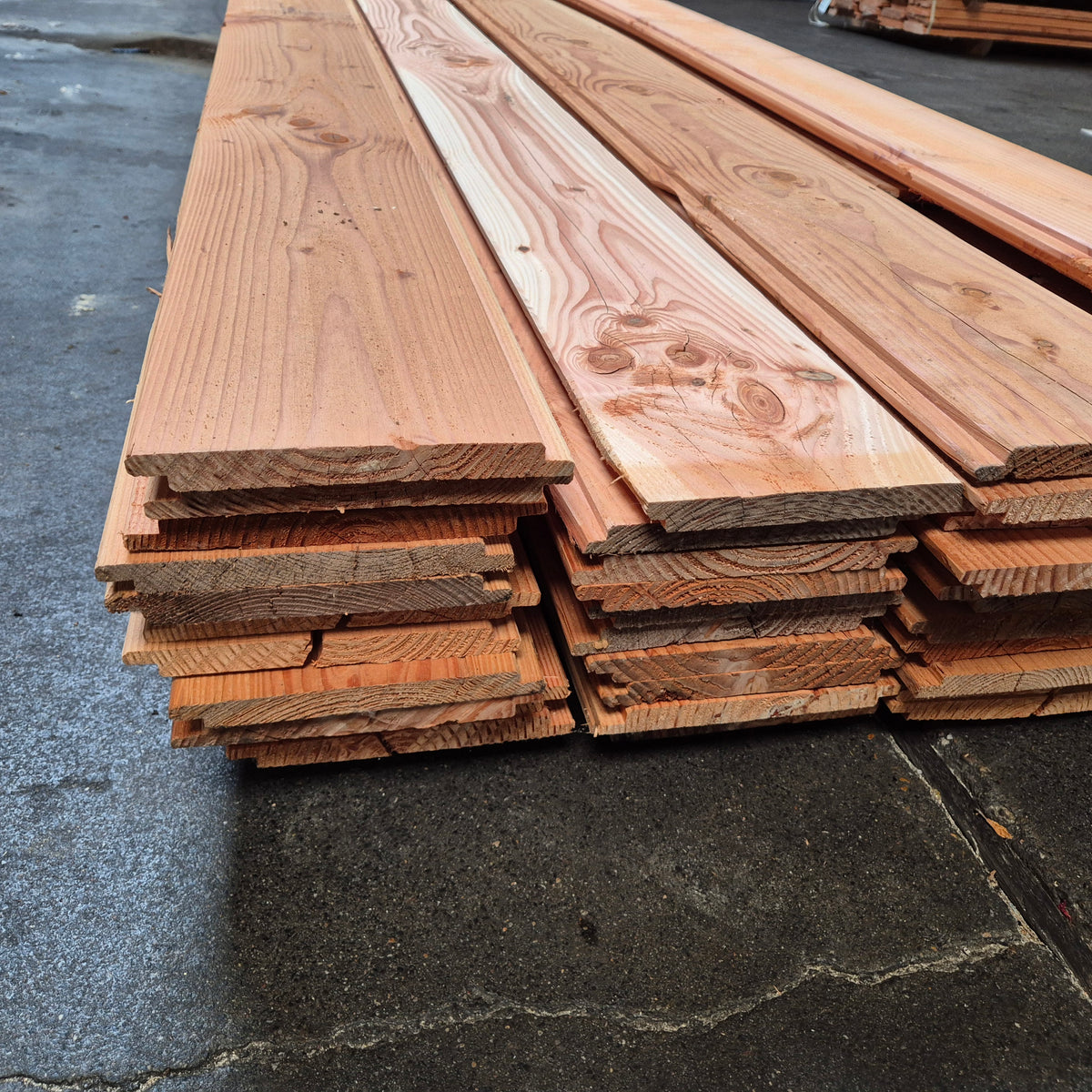 Een partij Douglas gevelbekleding met een Halfhouts Rabat profiel.