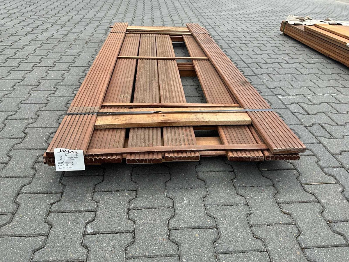 Partij hardhouten vlonderplanken.