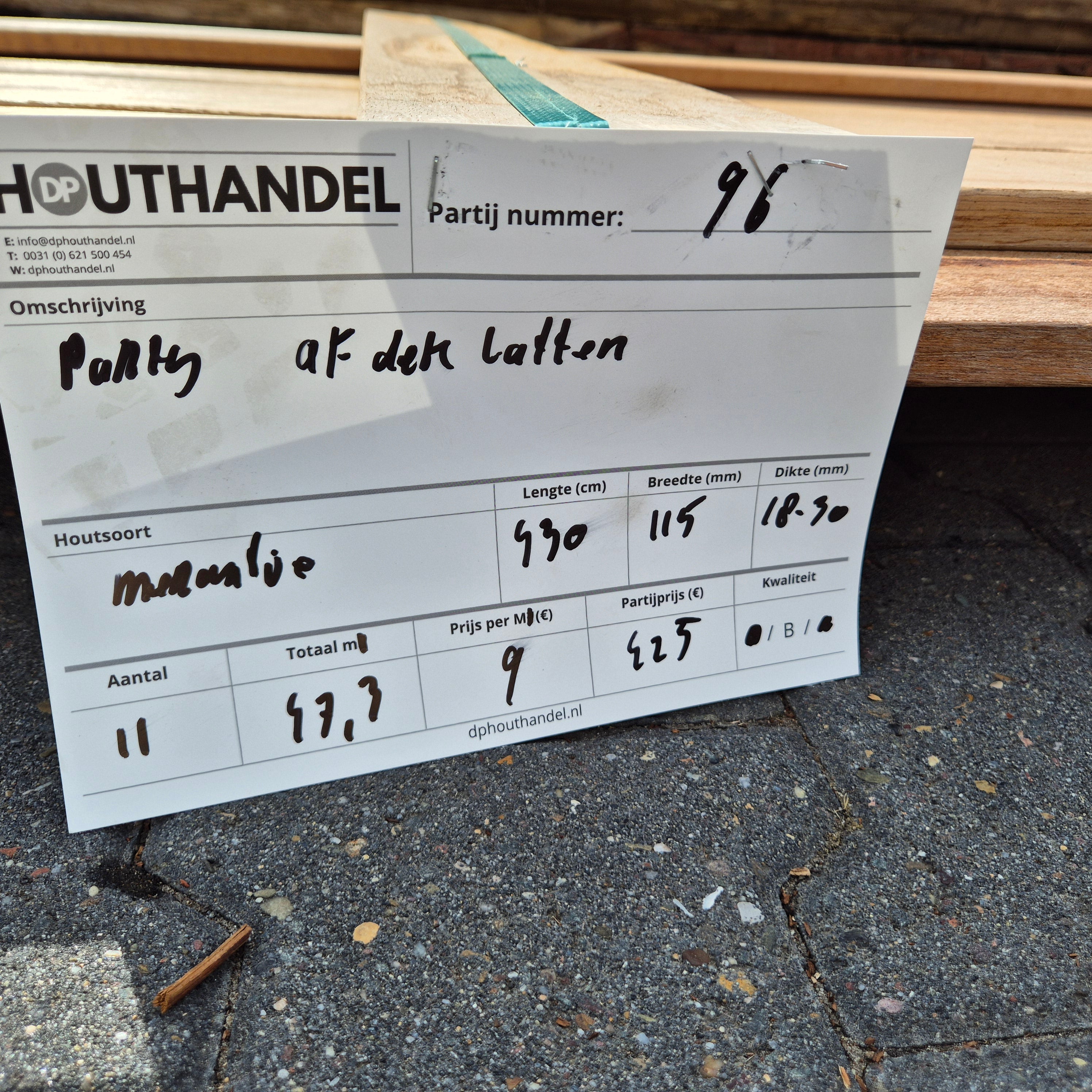 Partij Meranti Afdeklatten 4300x115x18-30mm