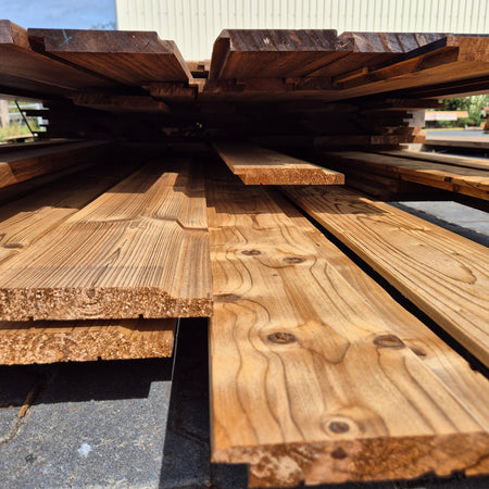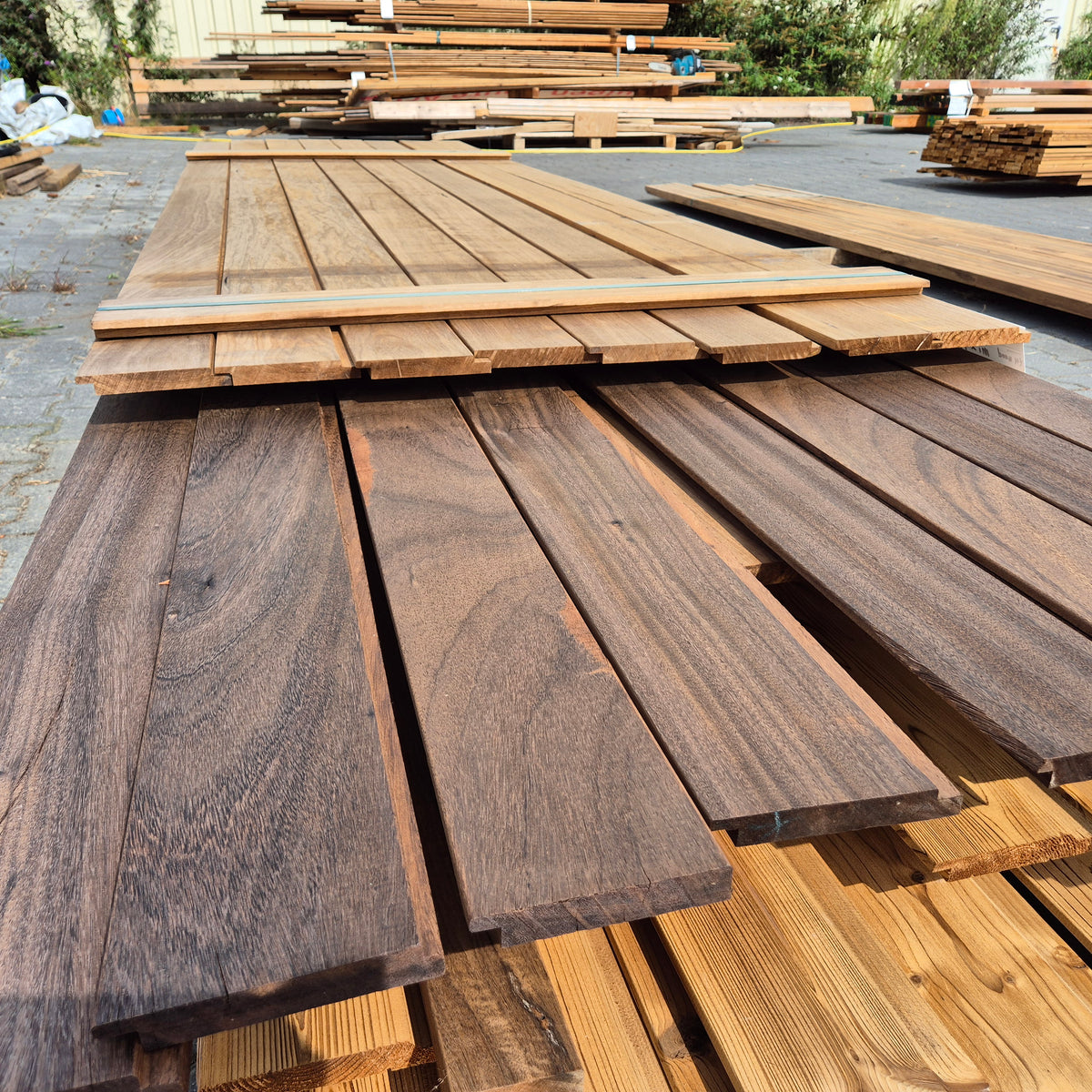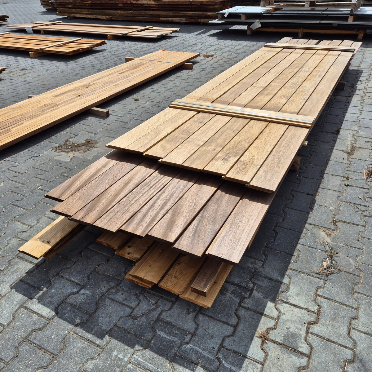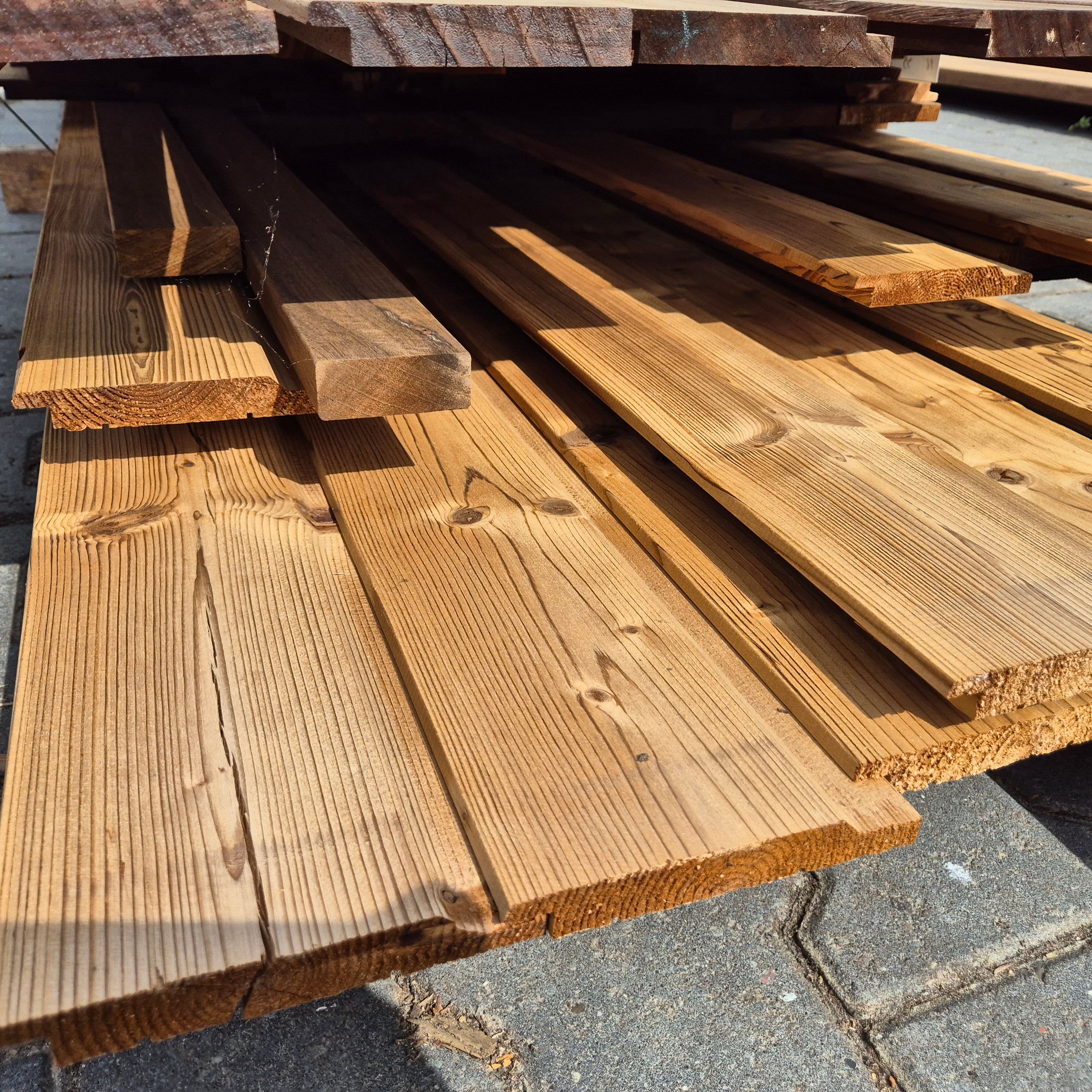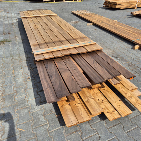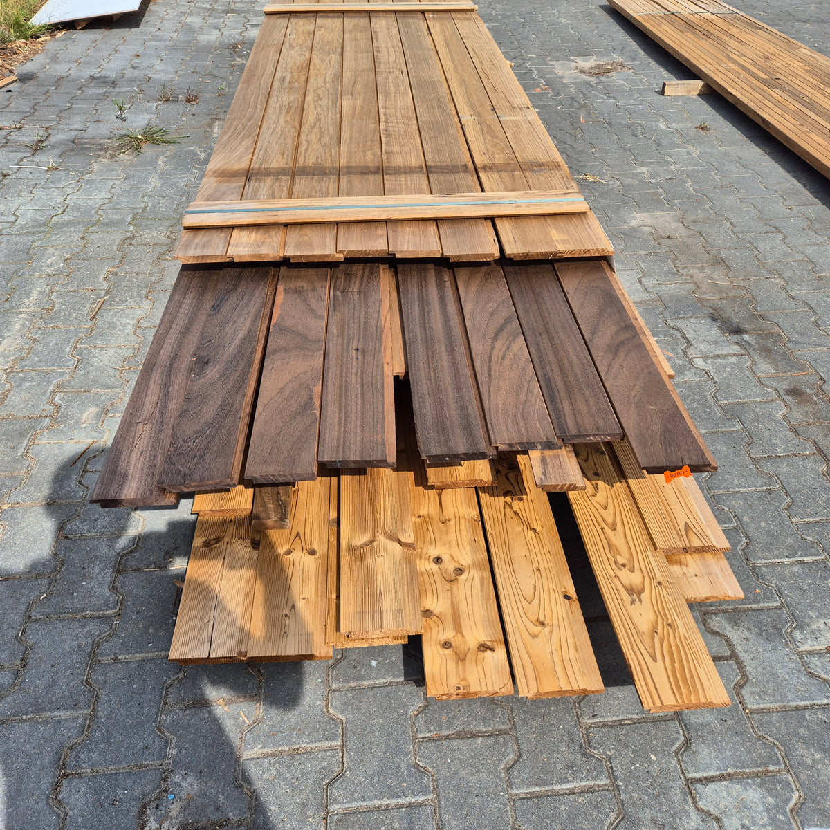 Mix Partij Thermowood van Frake, Dabéma en Vurenhout. Dit hout is Thermisch Gemodificeerd voor duurzaamheid en een warme uitstraling.