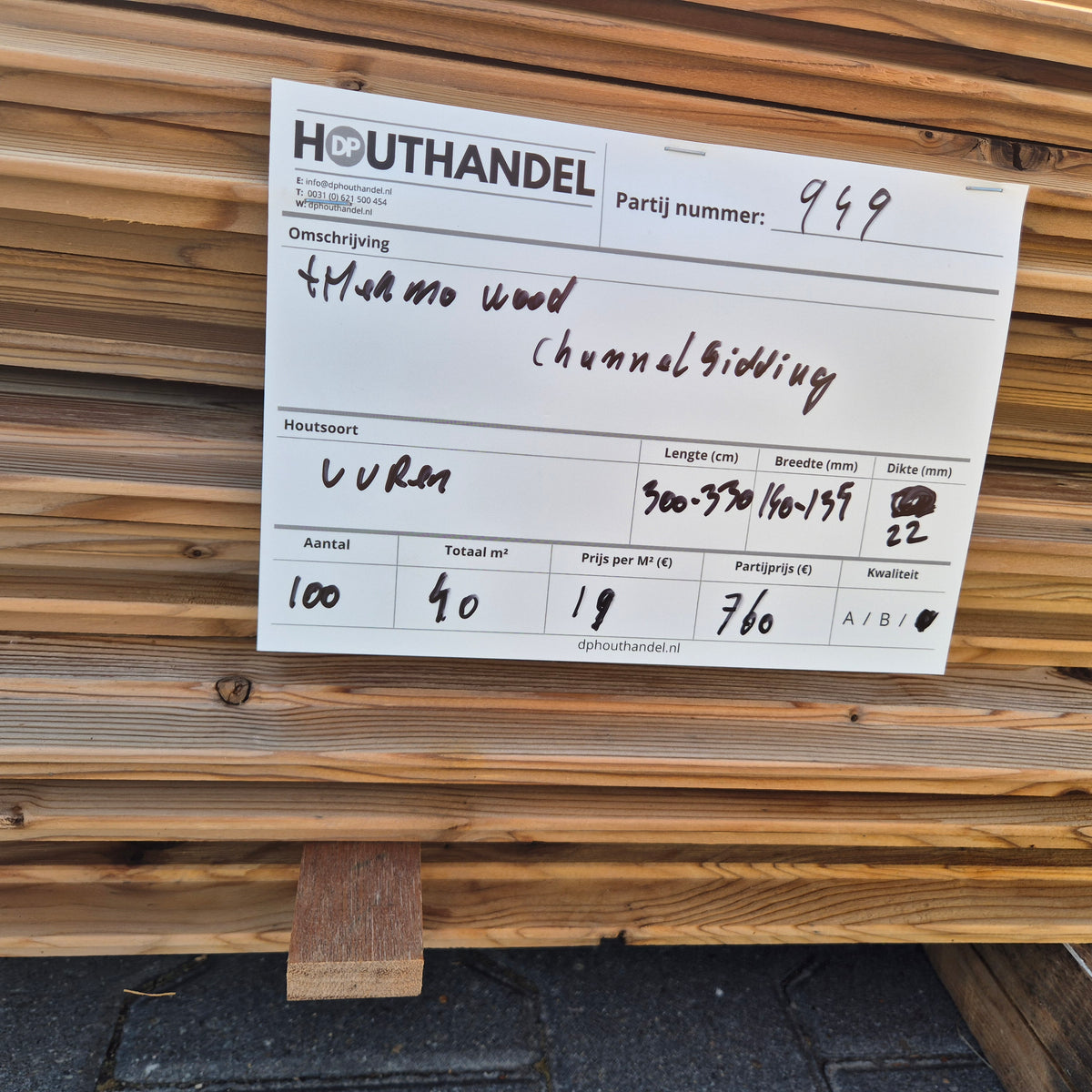 Bezorging mogelijk! Wij bezorgen onze houtpartijen door heel Nederland voor een vast tarief van €195. Bezorging naar België is mogelijk op aanvraag!
