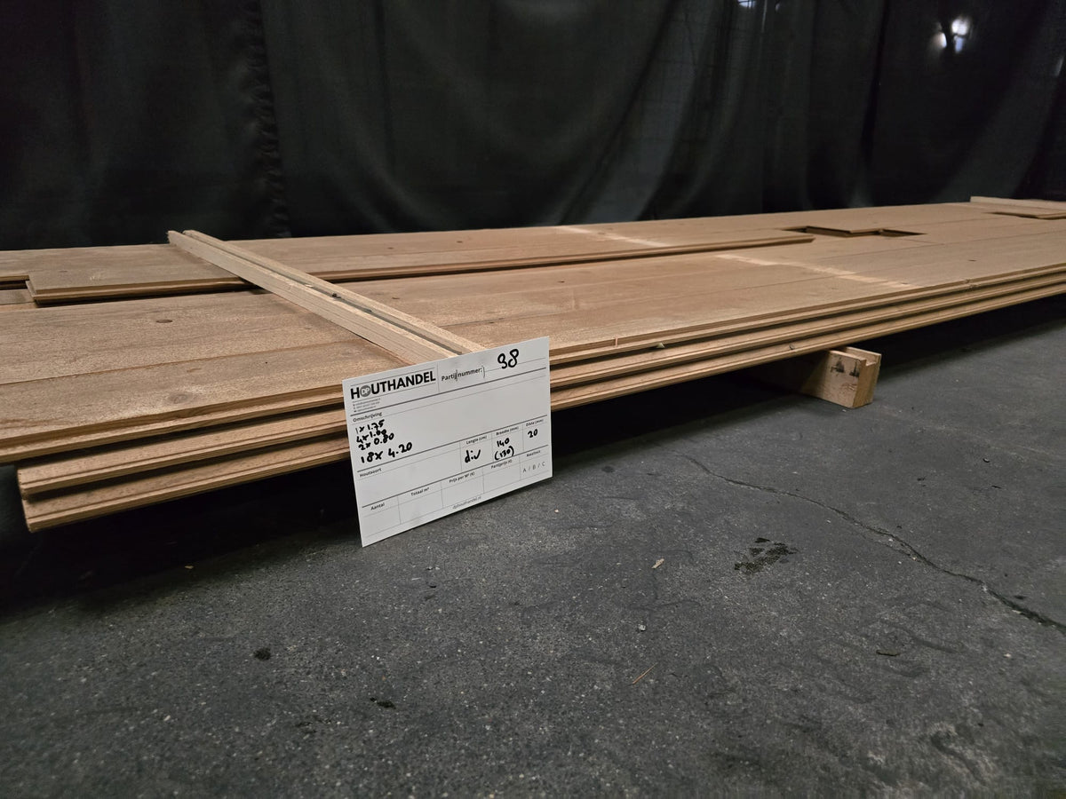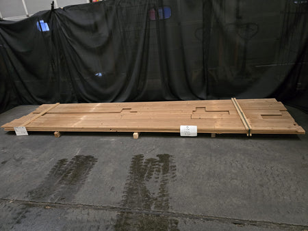 Partij Thermowood Vuren gevelbekleding met Channelsiding profiel. Dit hout is thermisch gemodificeerd voor duurzaamheid en een warme uitstraling.
