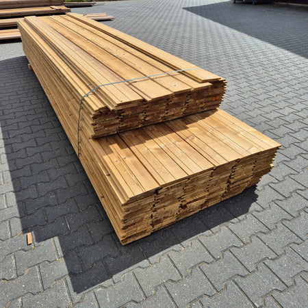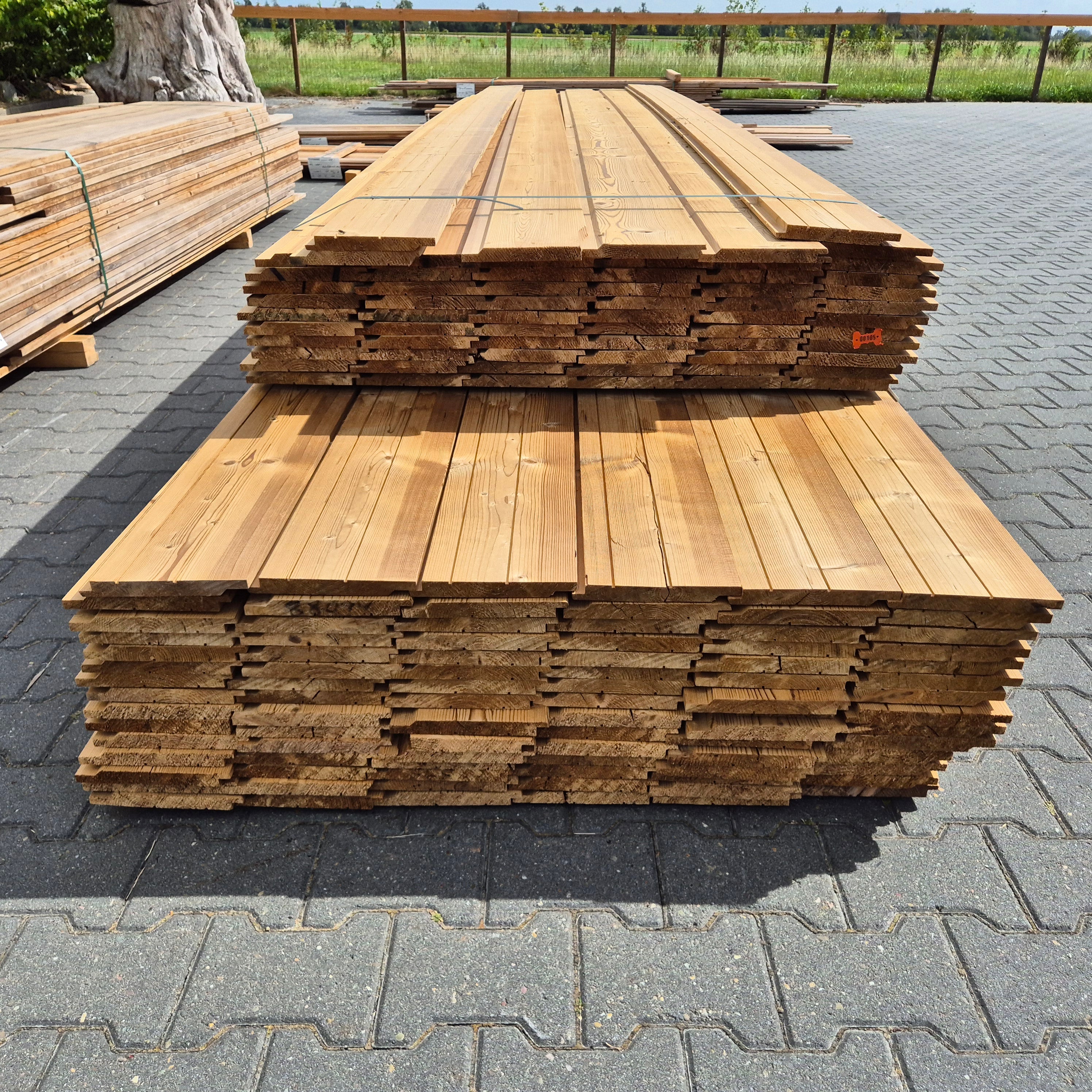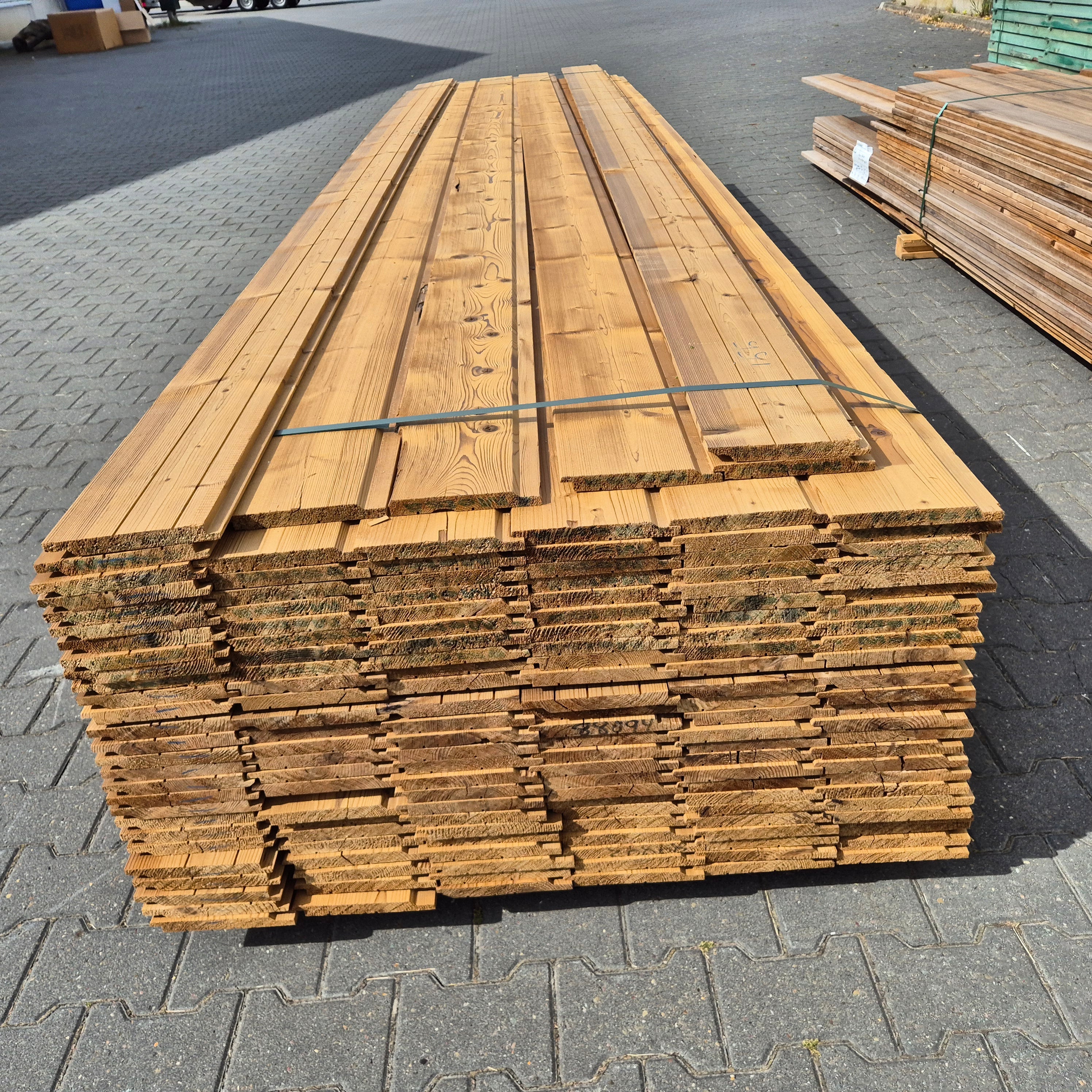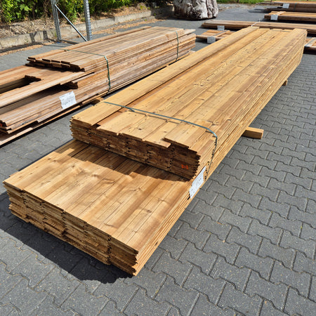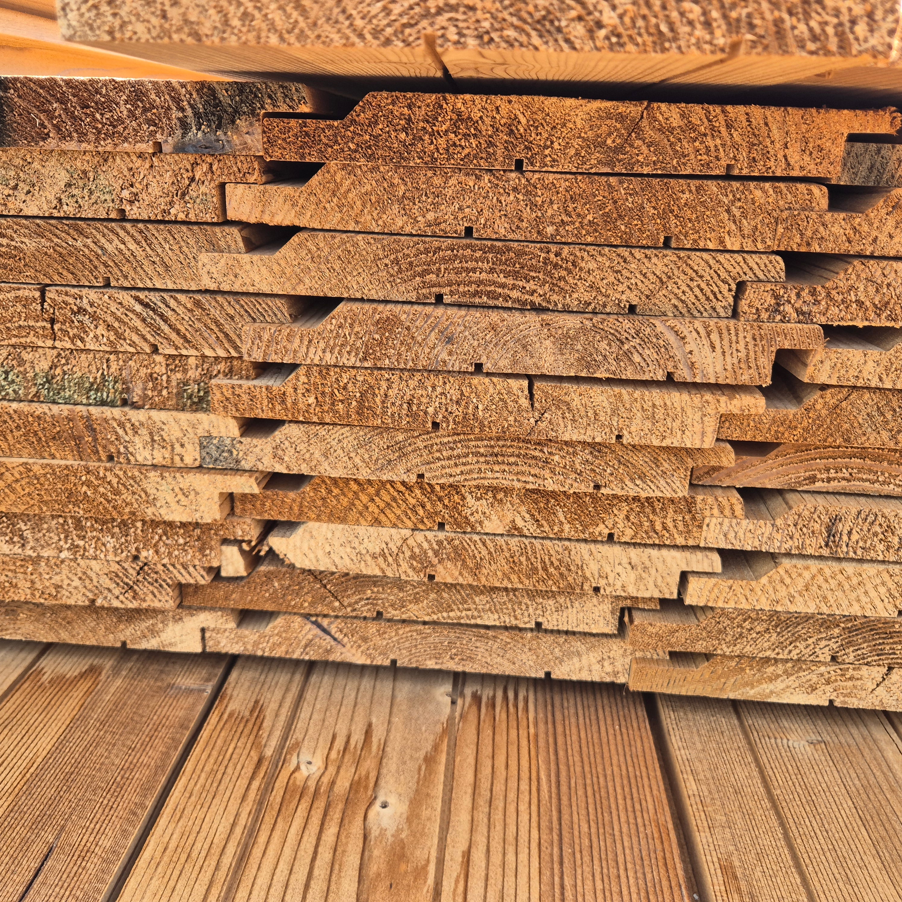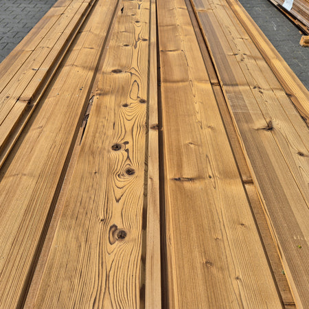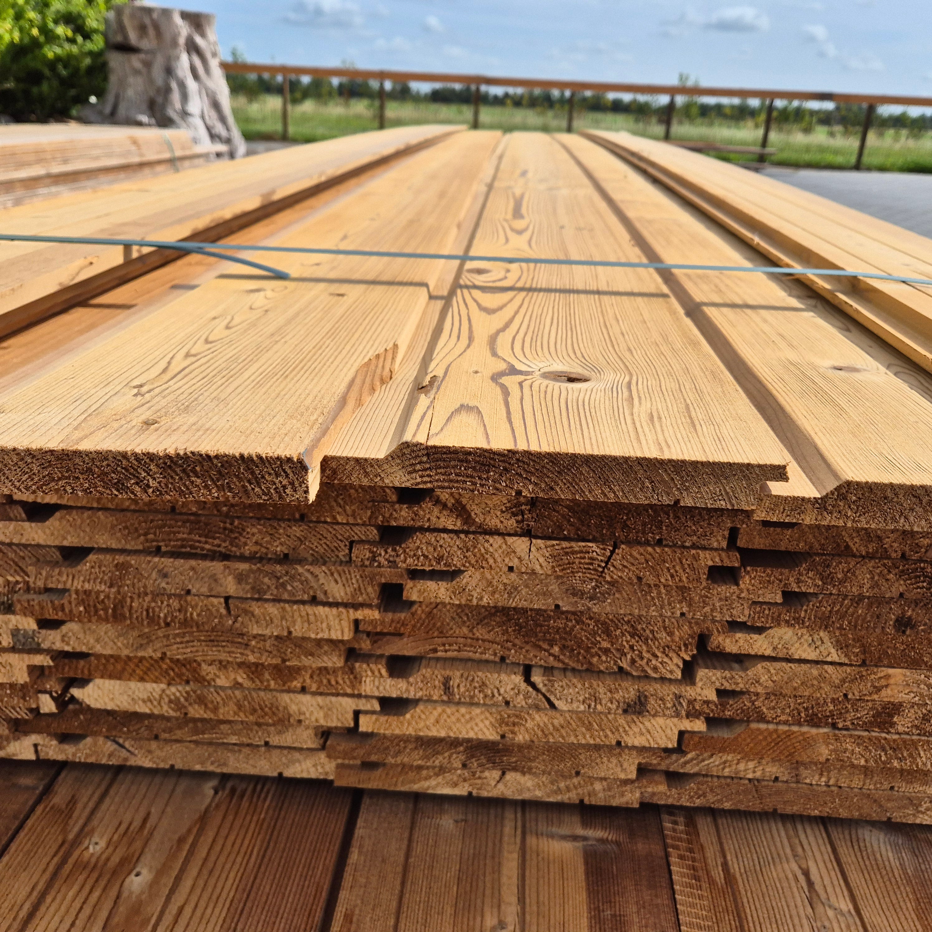 Partij Thermowood Vuren gevelbekleding met een Channelsidingprofiel. Dit hout is Thermisch Gemodificeerd voor duurzaamheid en een warme uitstraling.
