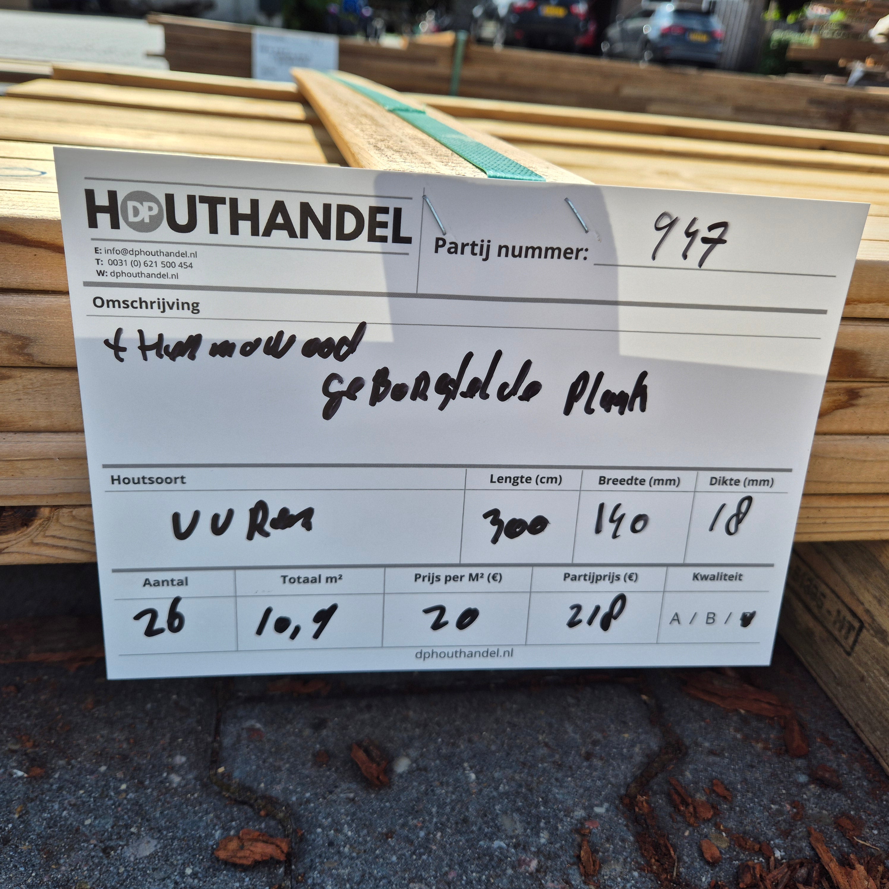 Bezorging mogelijk! Wij bezorgen onze houtpartijen door heel Nederland voor een vast tarief van €195. Bezorging naar België is mogelijk op aanvraag!