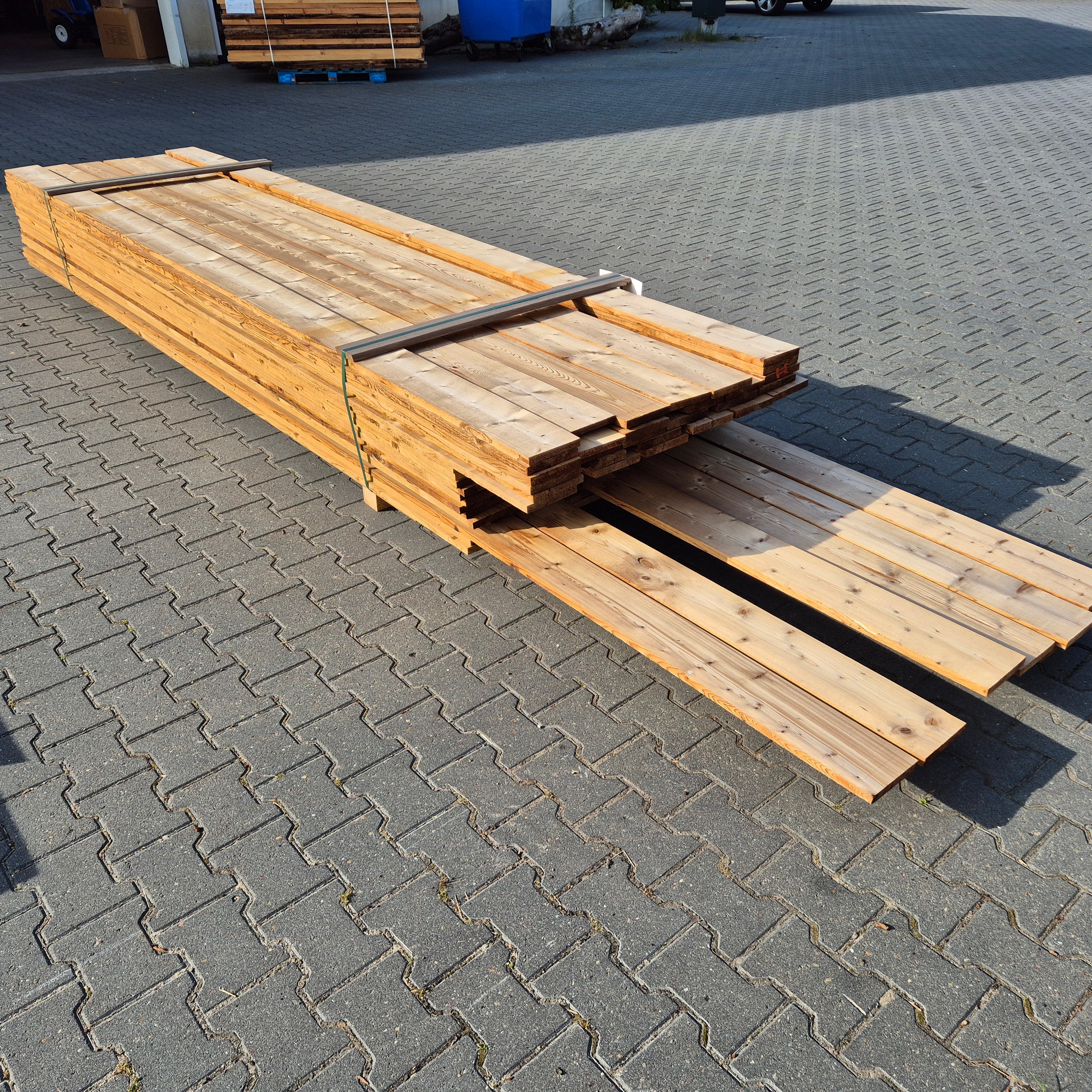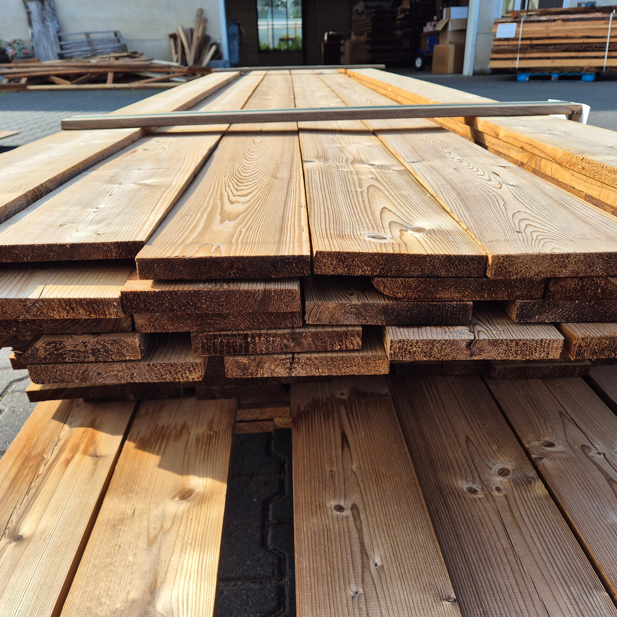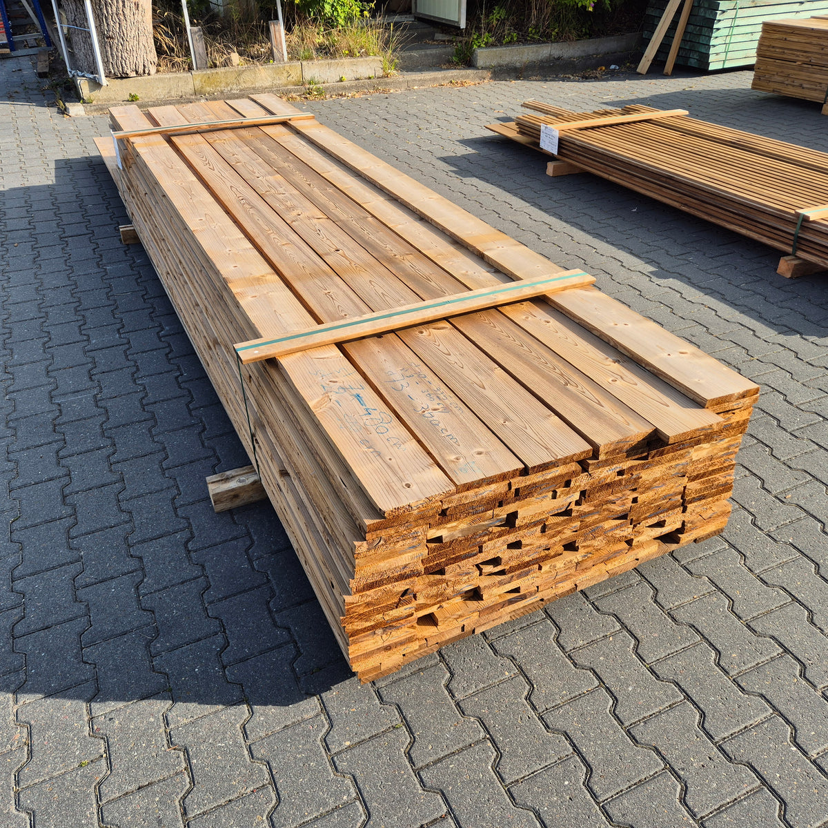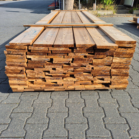 Een partij Thermo Vuren Geschaafde Planken. Deze planken zijn thermisch gemodificeerd voor hun duurzaamheid en warme uitstraling.