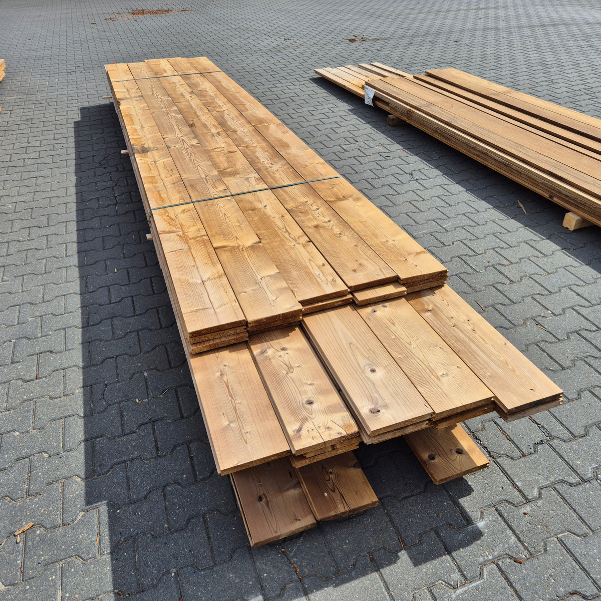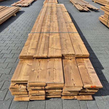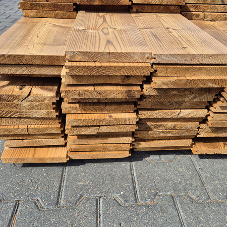 Partij Vuren geschaafde planken. Thermisch gemodificeerd (Thermowood) voor duurzaamheid en een warme uitstraling.