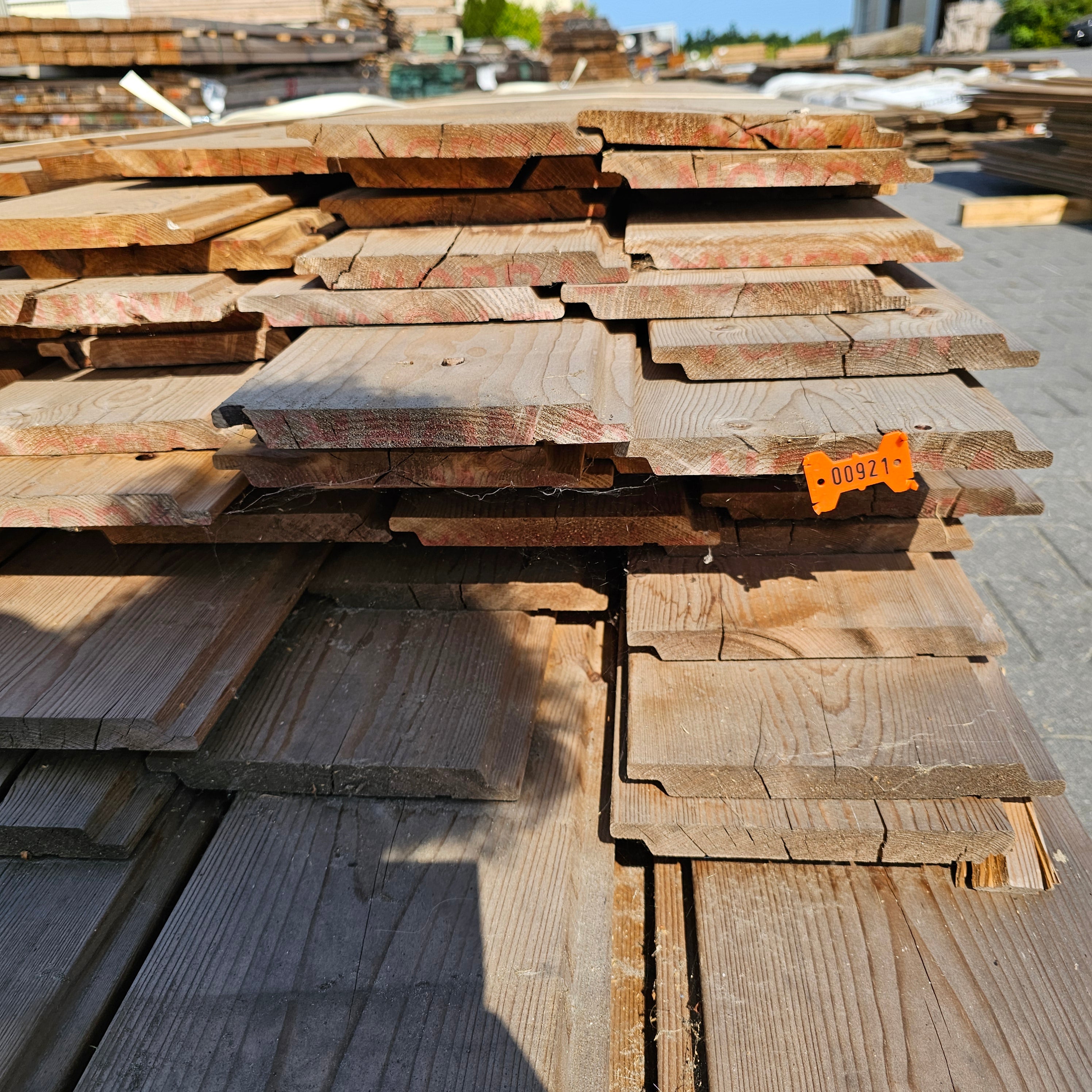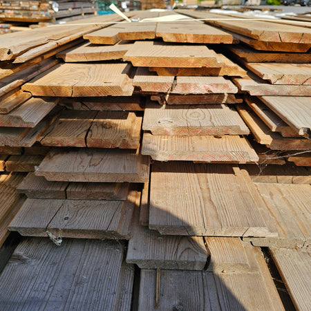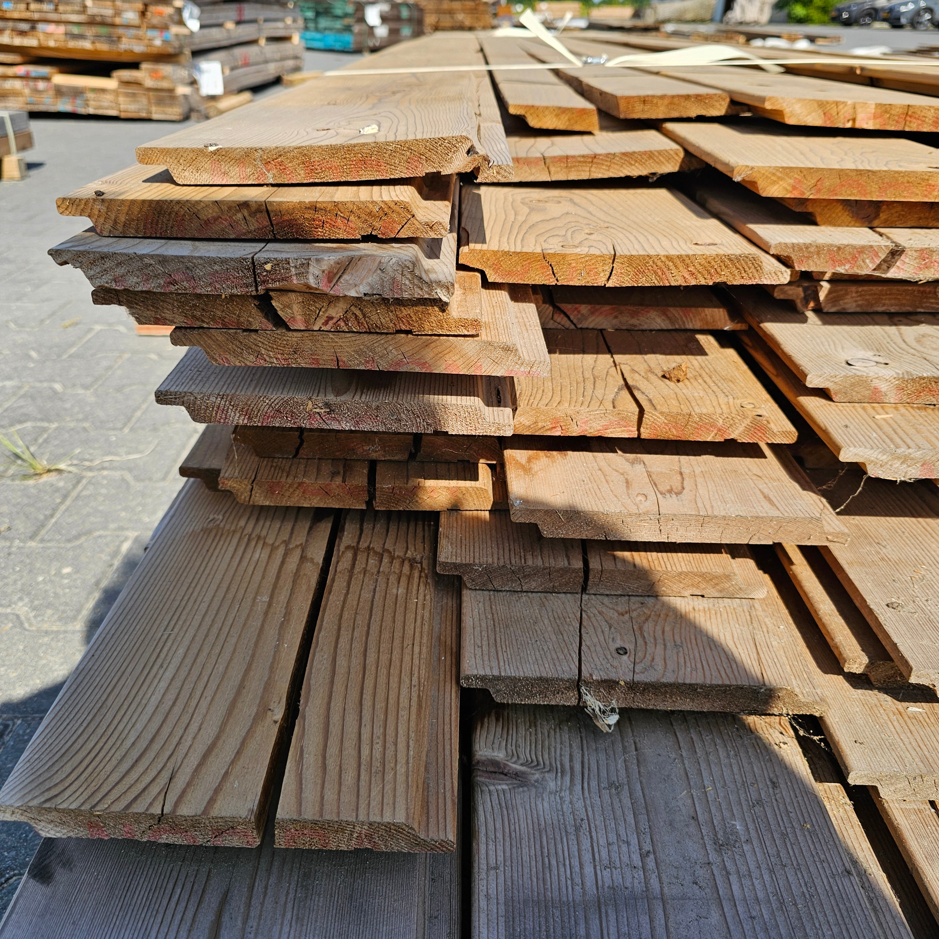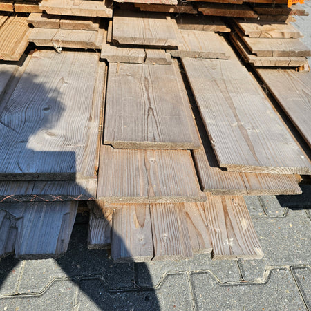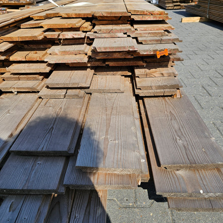 Partij Vuren Gevelbekleding met Halfhouts Rabat profiel, geschikt voor diverse toepassingen en thermisch gemodificeerd (Thermowood) voor duurzaamheid en een warme uitstraling.