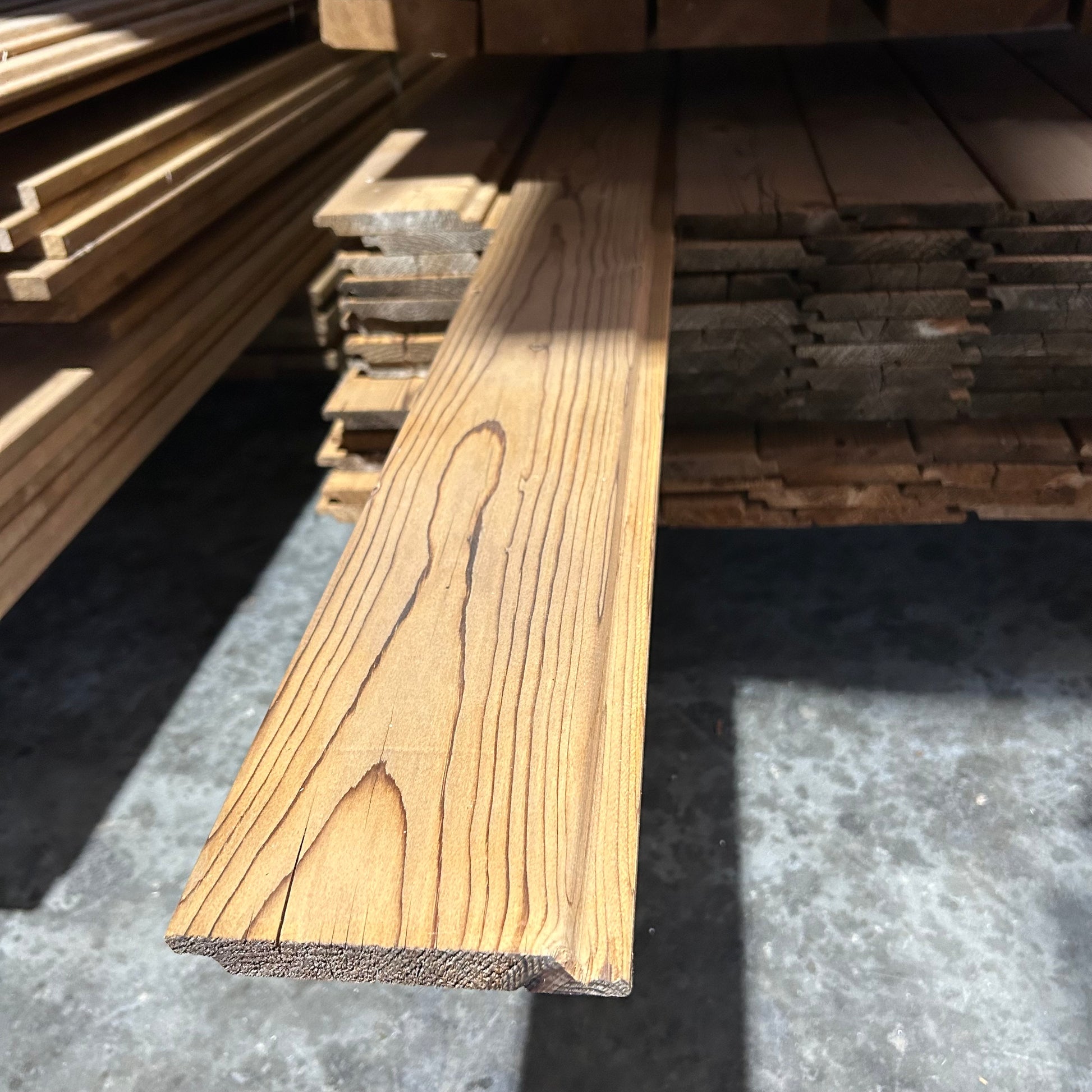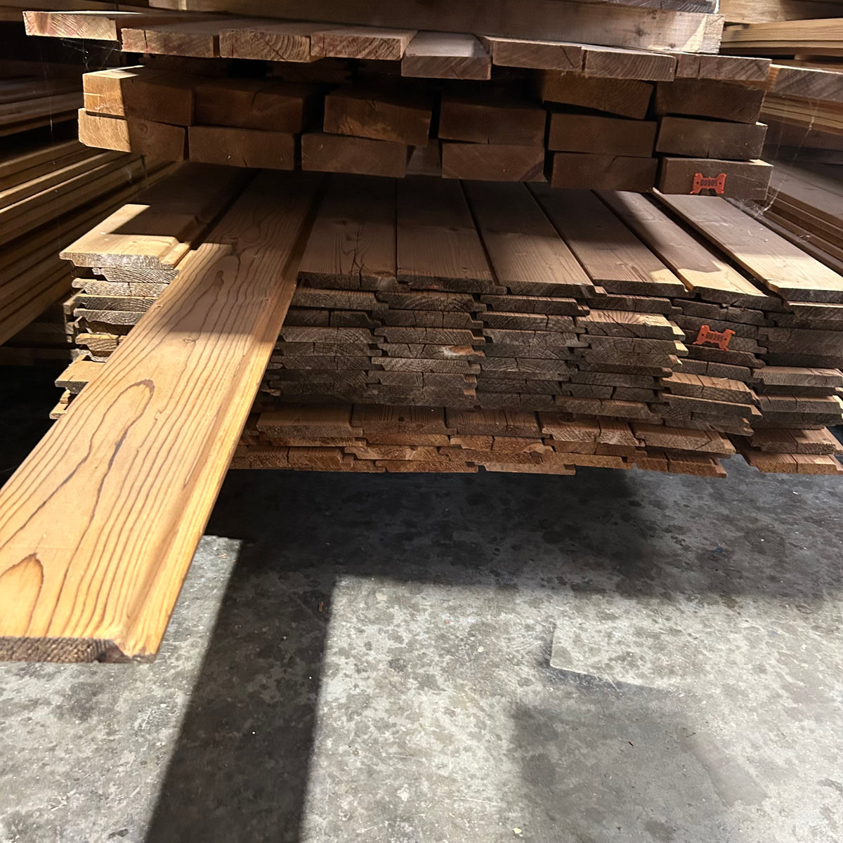 Partij Vuren Gevelbekleding met een Halfhouts Rabat profiel, geschikt voor diverse toepassingen en thermisch gemodificeerd (Thermowood) voor duurzaamheid en een warme uitstraling.