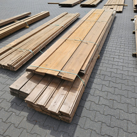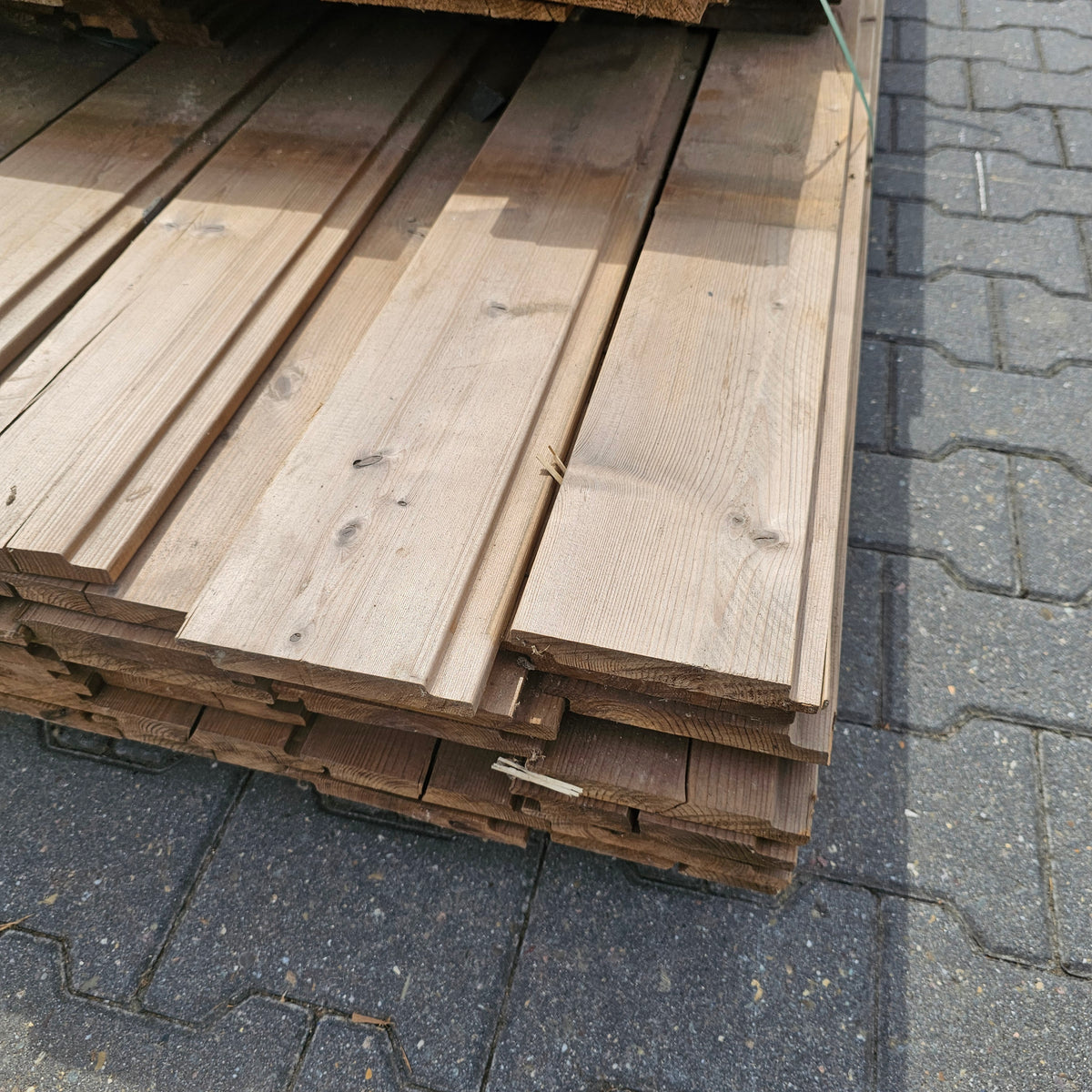 Partij Vuren Gevelbekleding Mix Partij met Channelsiding en Zweeds Rabat profiel, geschikt voor diverse toepassingen en thermisch gemodificeerd (Thermowood) voor duurzaamheid en een warme uitstraling.