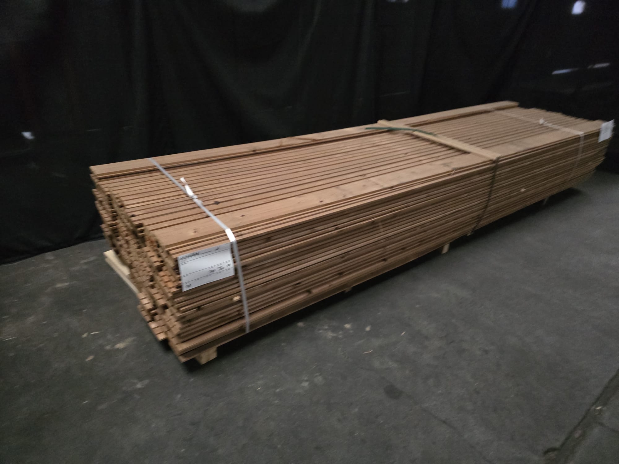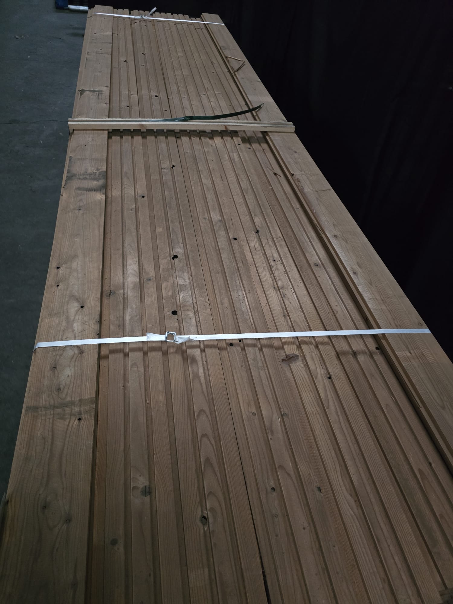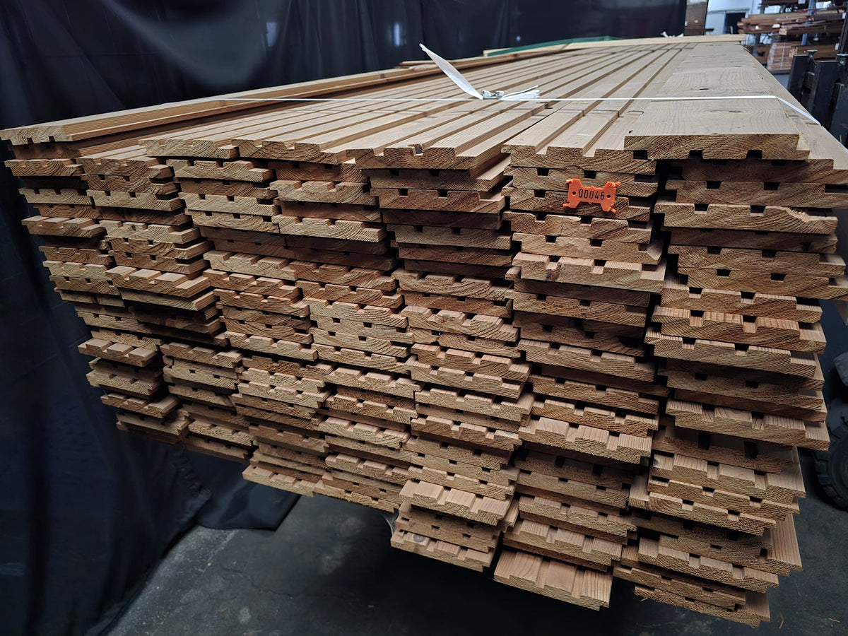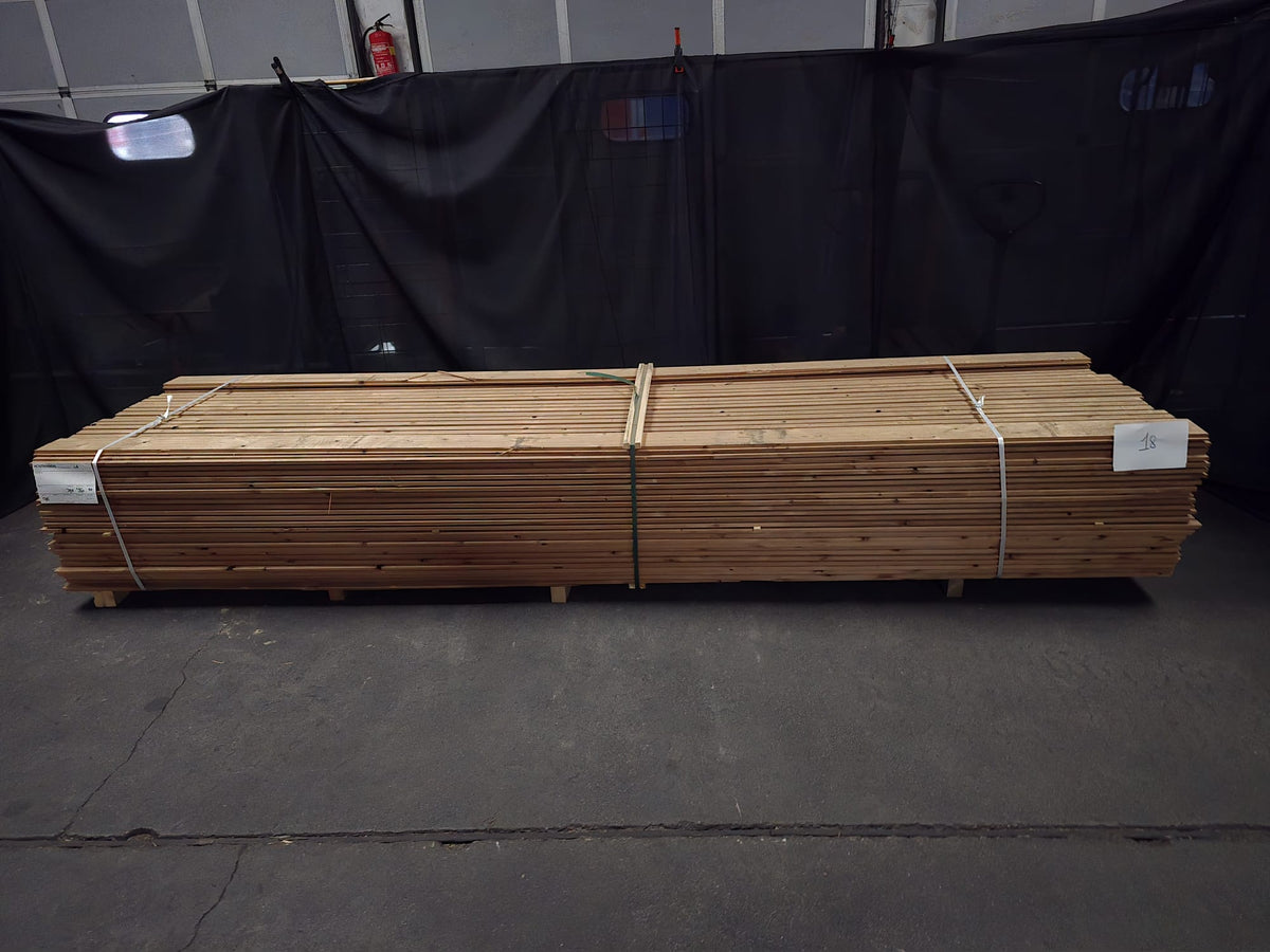 Partij Thermowood Vuren gevelbekleding met trippel rhombus profiel. Dit hout is Thermisch Gemodificeerd voor duurzaamheid en een warme uitstraling.