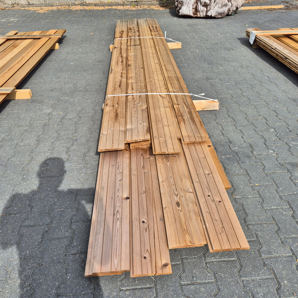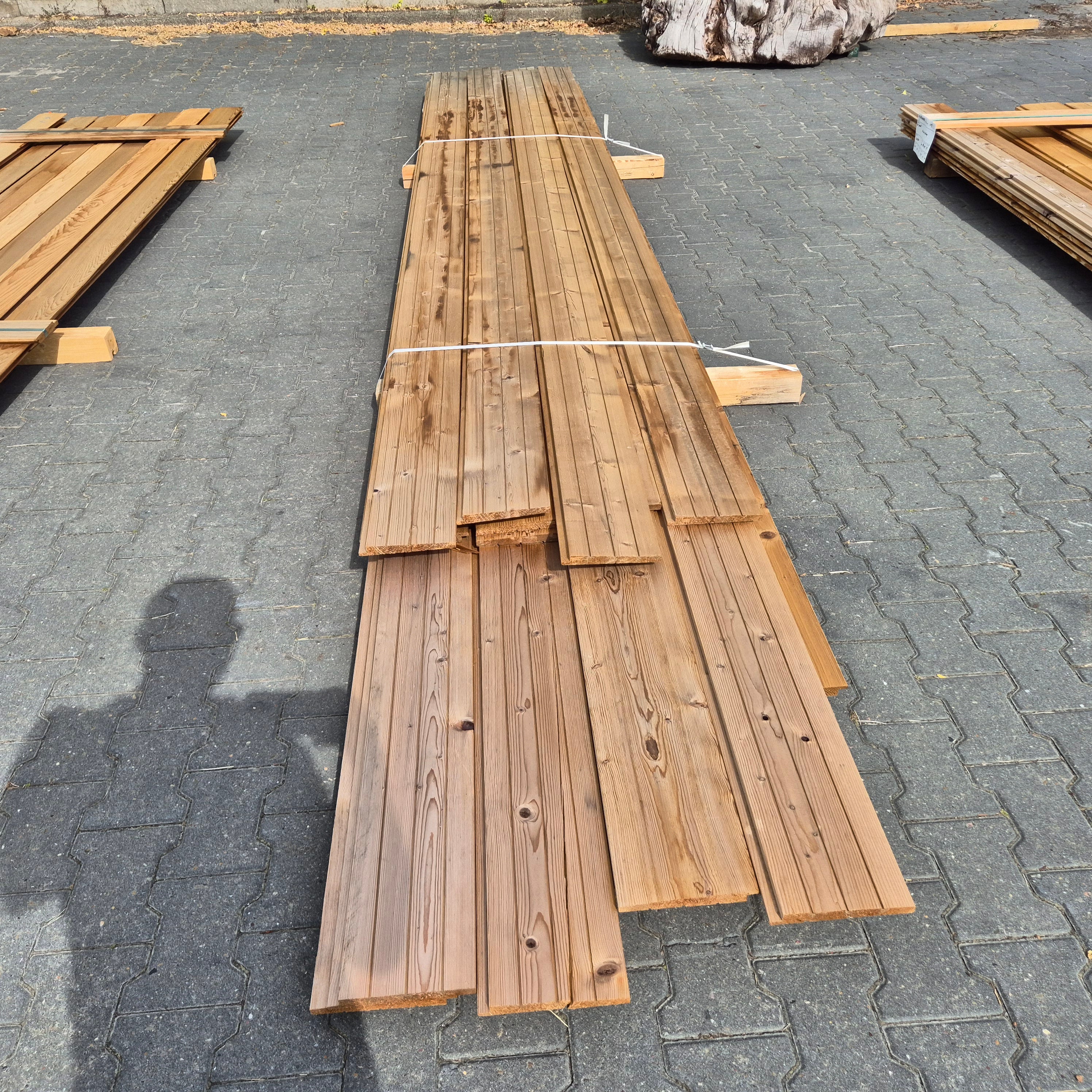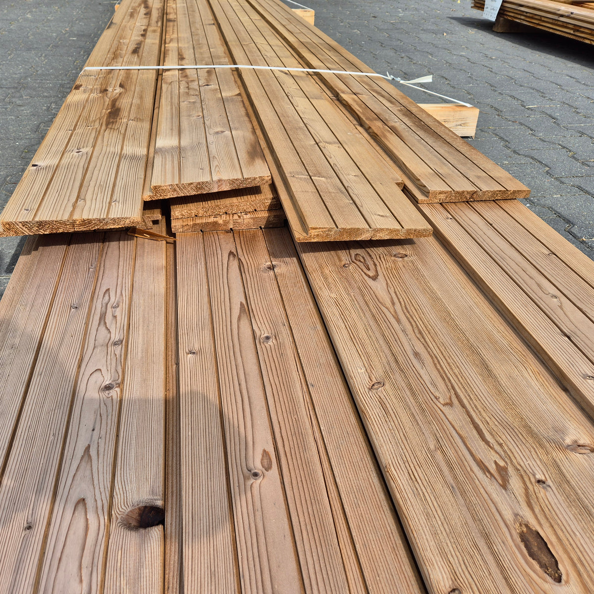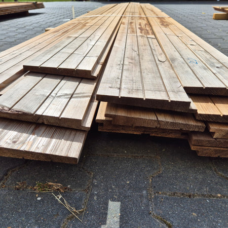 Partij Thermowood Vuren gevelbekleding met een Zweeds Rabat profiel.