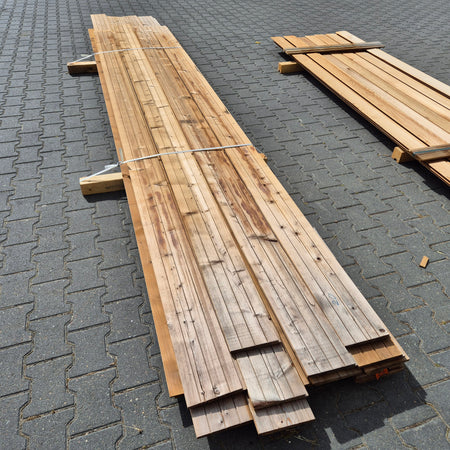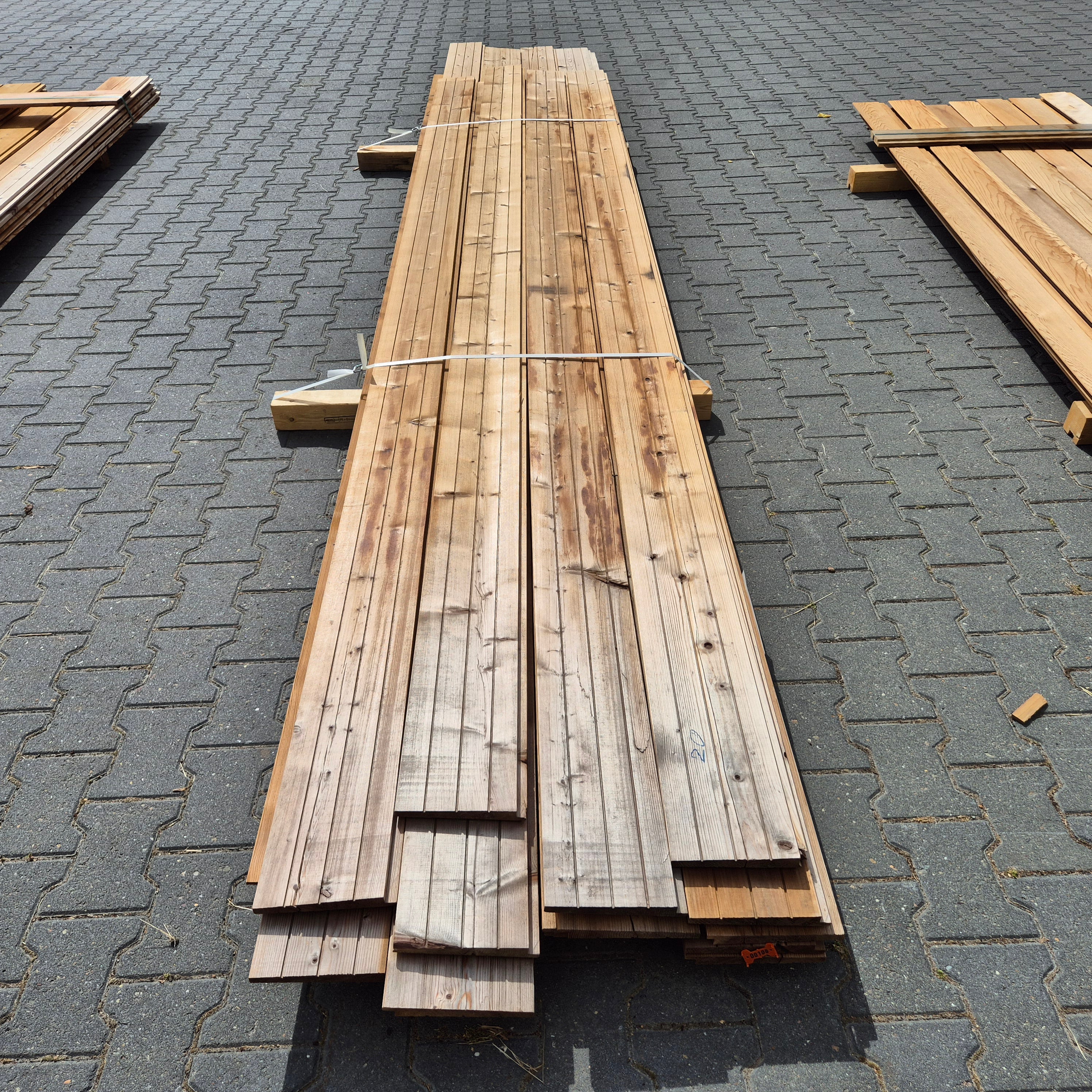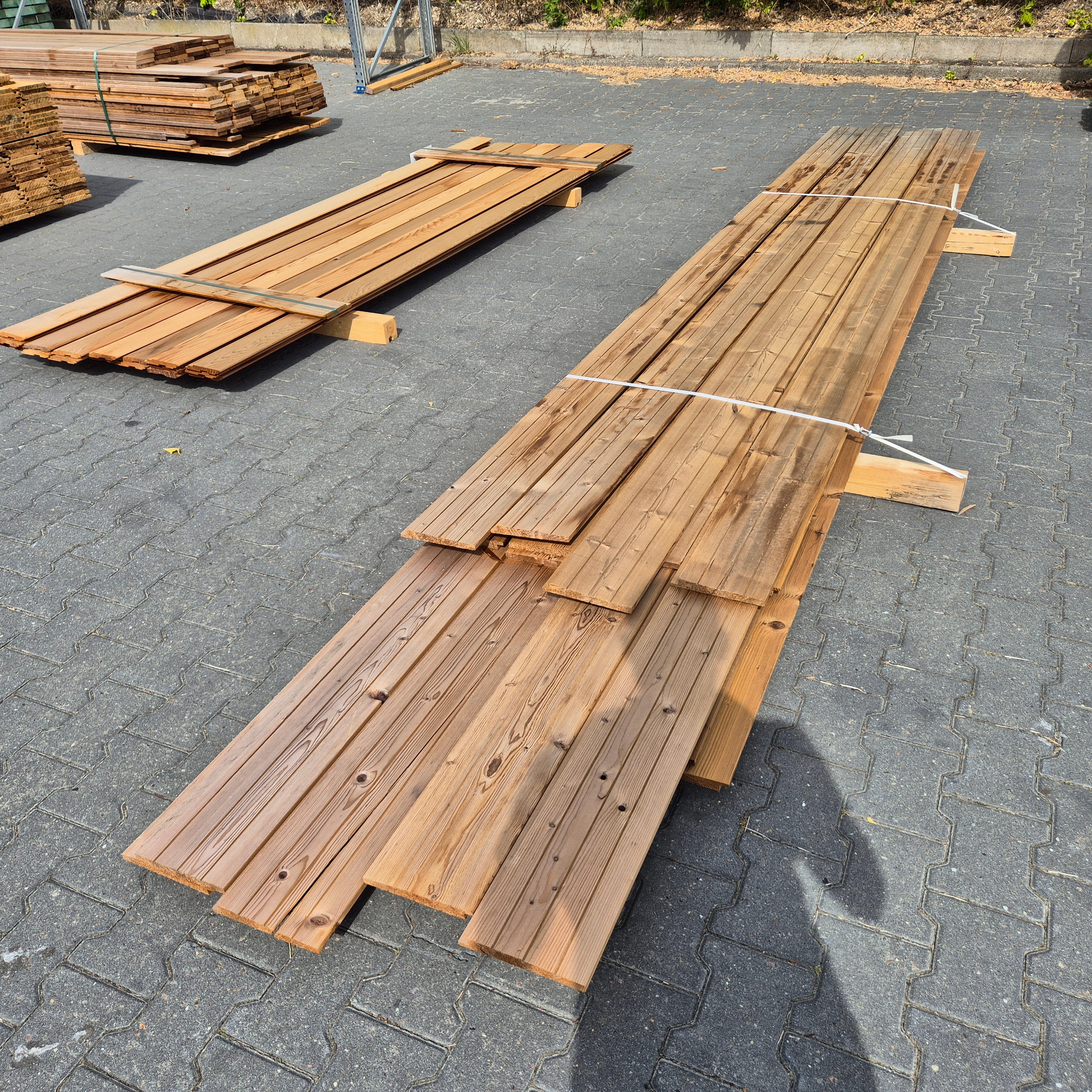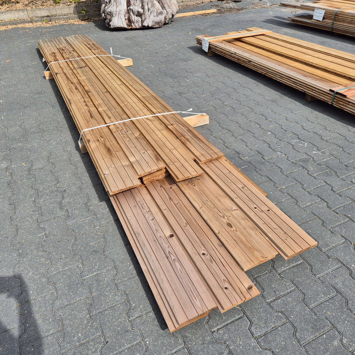 Partij Thermowood Vuren gevelbekleding met een Zweeds Rabat profiel.