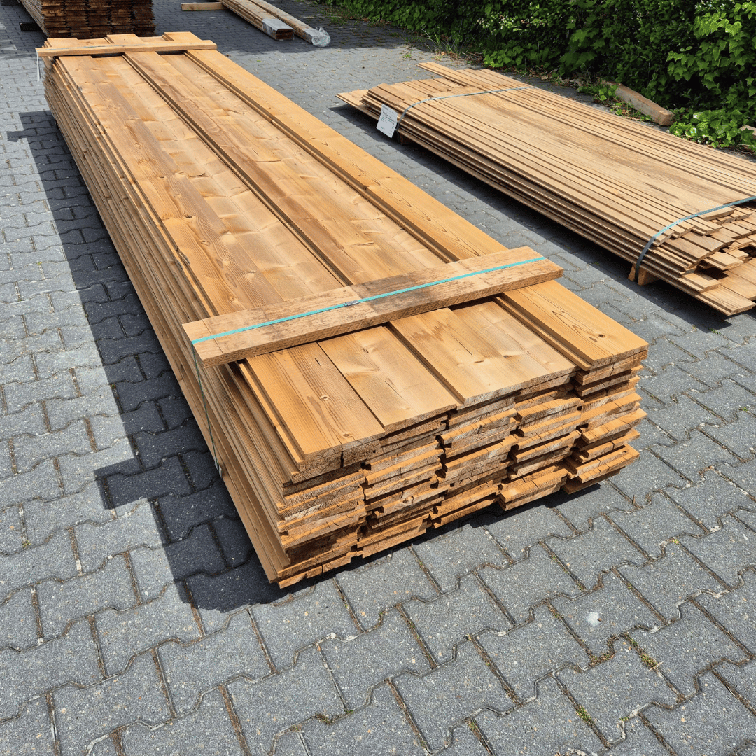 Partij Thermo Vuren Gevelbekleding met Zweeds Rabat profiel. Dit hout is thermisch gemodificeerd (Thermowood) voor duurzaamheid en een warme uitstraling.