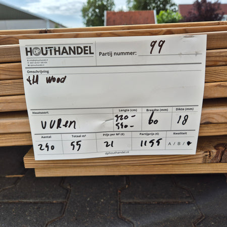 Bezorging mogelijk! Wij bezorgen onze houtpartijen door heel Nederland voor een vast tarief van €195. Bezorging naar België is mogelijk op aanvraag!